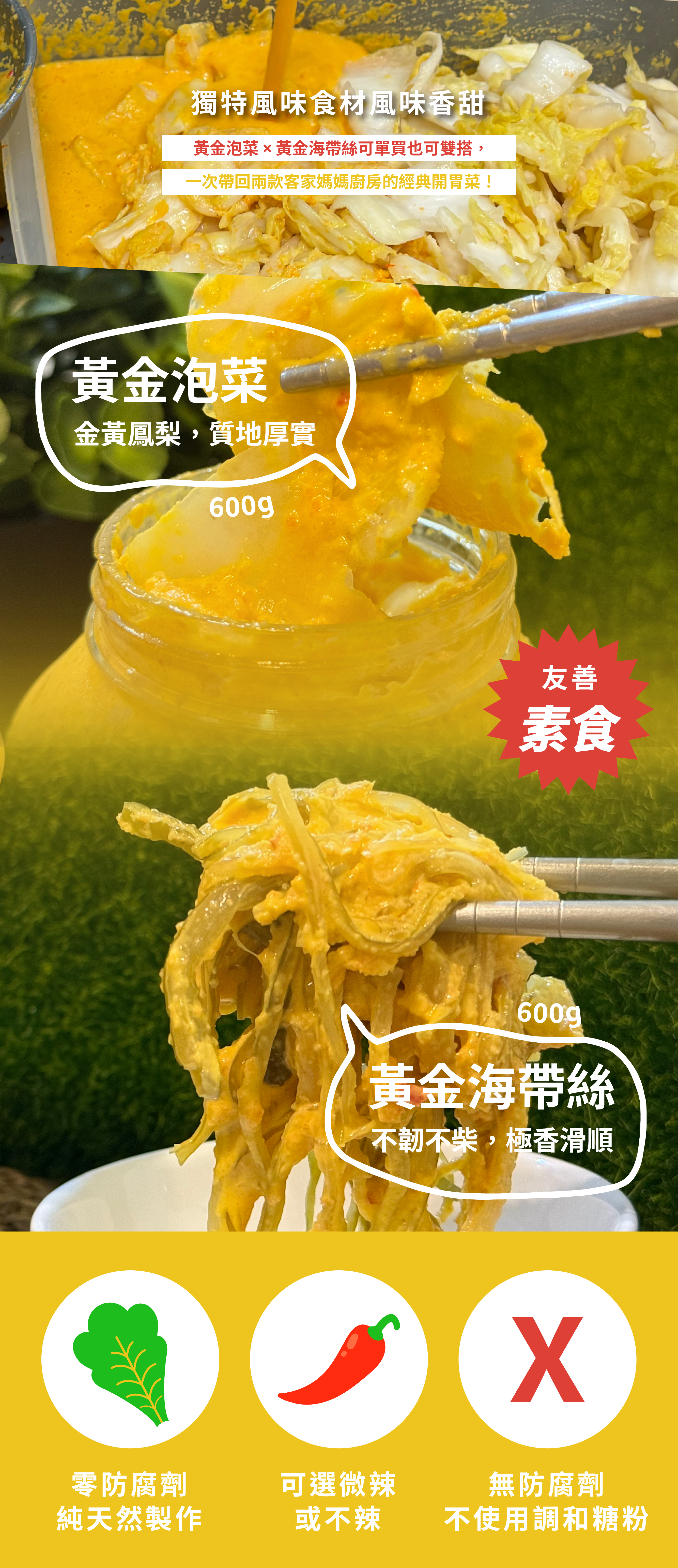 📦 團購優惠價(市售單罐:黃金泡菜 $180 / 黃金海帶絲 $180)