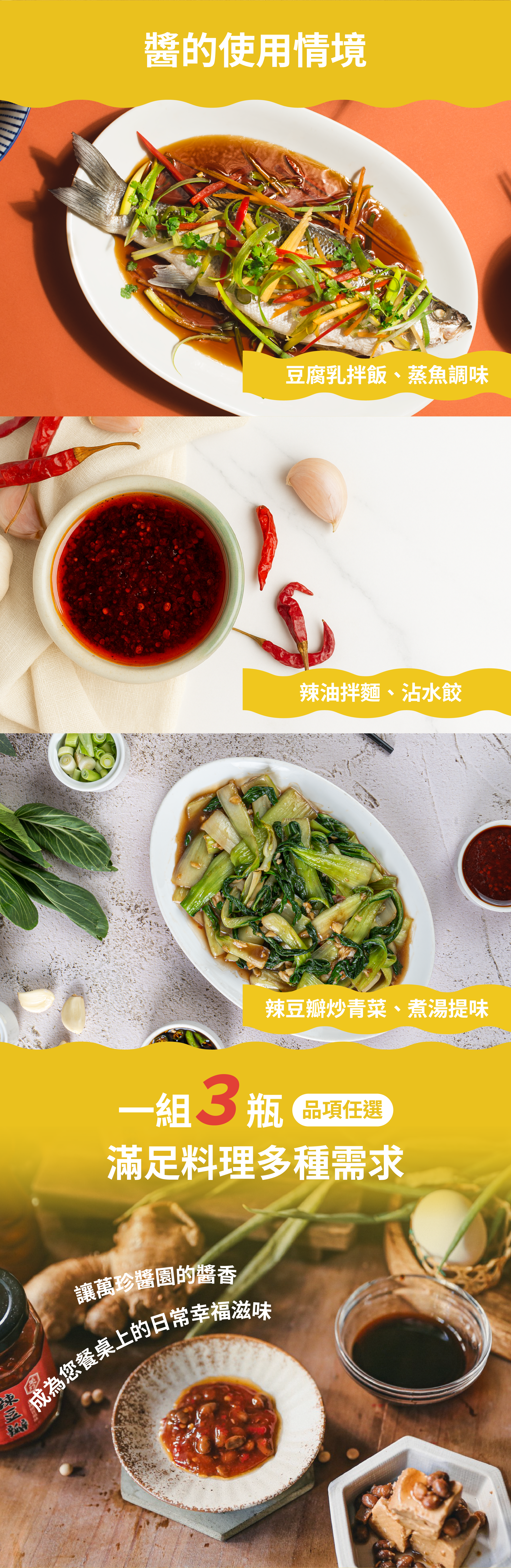 【萬珍醬園 招牌三件組】豆腐乳 × 辣油 × 辣豆瓣